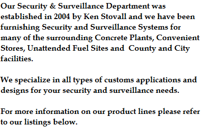 State of Texas Security License No: B17859401 Issued to: THE STOVALL CORP. 104 E. Brodway Kennedale, Texas 76060 Service Dept: 817-572-0182 ext 14 Fax: 817-953-8902 Digital Watchdog 2013 Catalog Vivotek Video Surveillance Equipment Milestone Video Survelliance Software 2GIG Security Product Information Alarm.com 2GIG Security Alarm Panel Demo Interlogix Video & Network Switch Devices Netgear POE Video Switches Optex IP Detector Technology